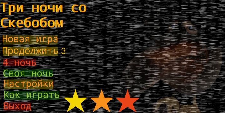 Три ночи со Скебобом — фанатская пародия на игру Скотт Коутона "Five nights at Freddy's" от Magma 969 и Sqwami, где главным героем является мем "Скебоб" из интернета. Также в игре есть и другие персонажи - мемы.